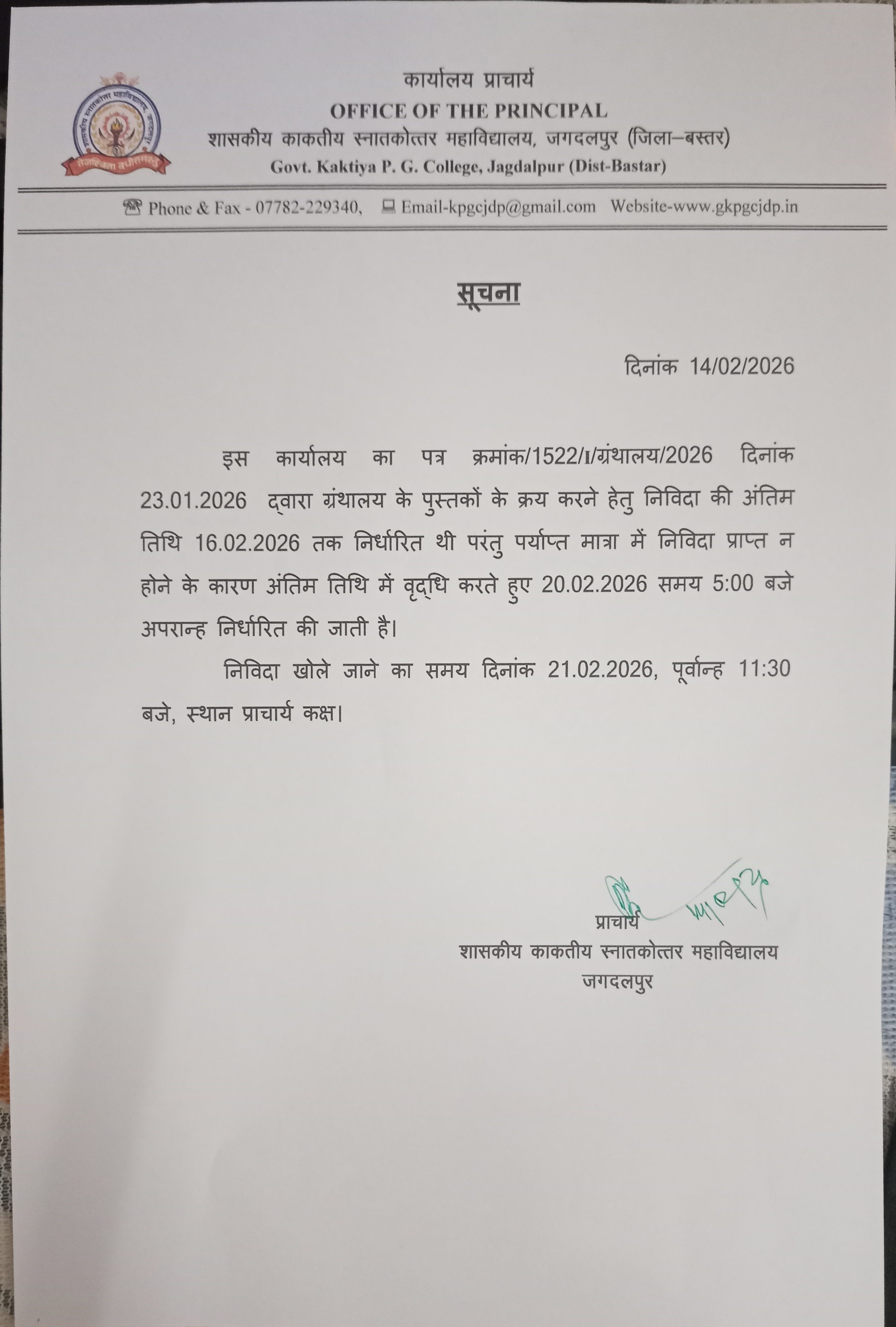 Through its multi-faceted academic programs, modern infrastructure, historical consciousness, and community-oriented research, Government Kaktiya PG College stands as a symbol of inclusive education and regional development. It remains committed to nurturing the minds of students, empowering rural youth, and contributing to the scientific and cultural richness of Bastar and beyond.